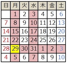 ※4日(日)から通常営業となります。