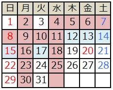 ※爪切りについて、土日祝日は予約制になります。詳しくは「お知らせ」の「所沢店の爪切りについて」を、ご覧ください。 ※営業、休業、短縮営業。