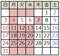 ※5月5日(火)6日(木)は営業、4日(月)・7日(木)はお休みとなります。 ※営業、休業、短縮営業。